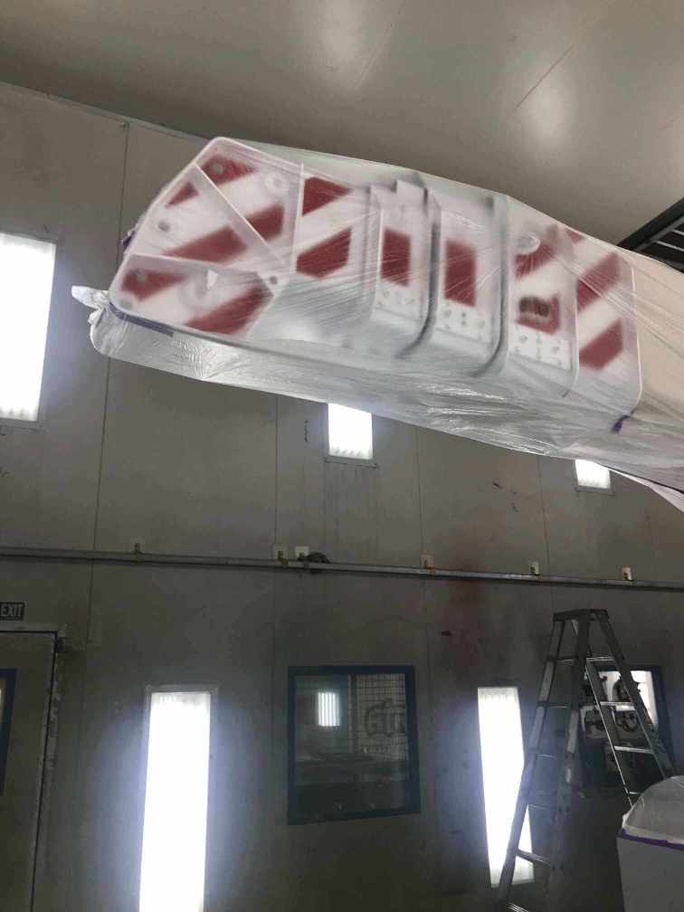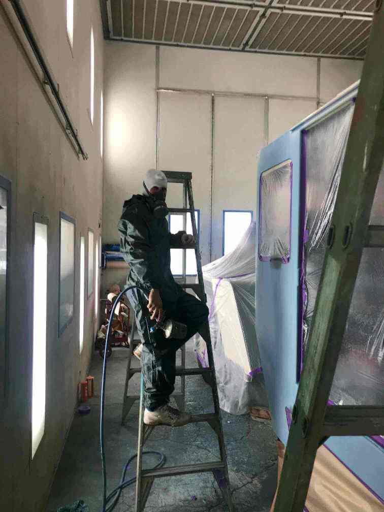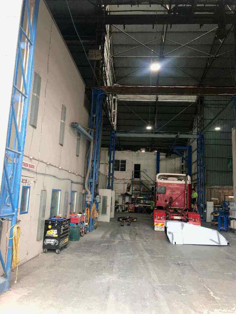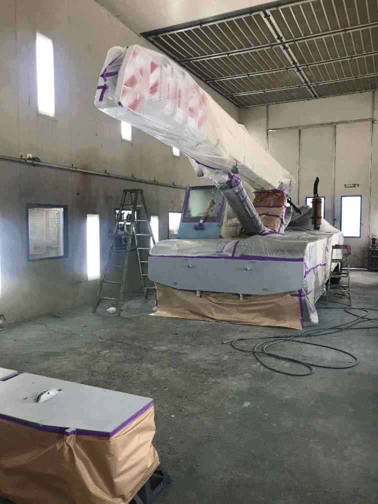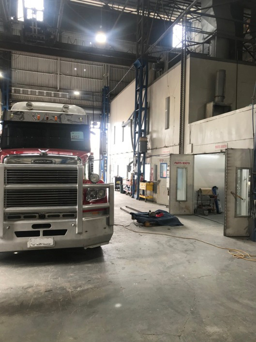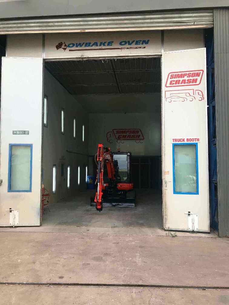 There are three independent spray booths built on a giant scale so semi trailers, road working machinery, farm/agricultural machinery and cranes can be driven in.